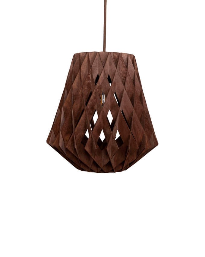 De hanglamp heeft met zijn grote vorm een aanwezigheid in de ruimte en past zowel in privé- als openbare omgevingen. De lamp is gemaakt van duurzaam gecertificeerd berkenmultiplex, dat met de hand is vervaardigd. De berkenlamellen creëren een warme sfeer wanneer het licht erdoorheen schijnt en zijn zonder schroeven of lijm gemonteerd. Bovendien heeft de hanglamp een stijlvol en geometrisch ontwerp dat in elke ruimte de aandacht trekt.