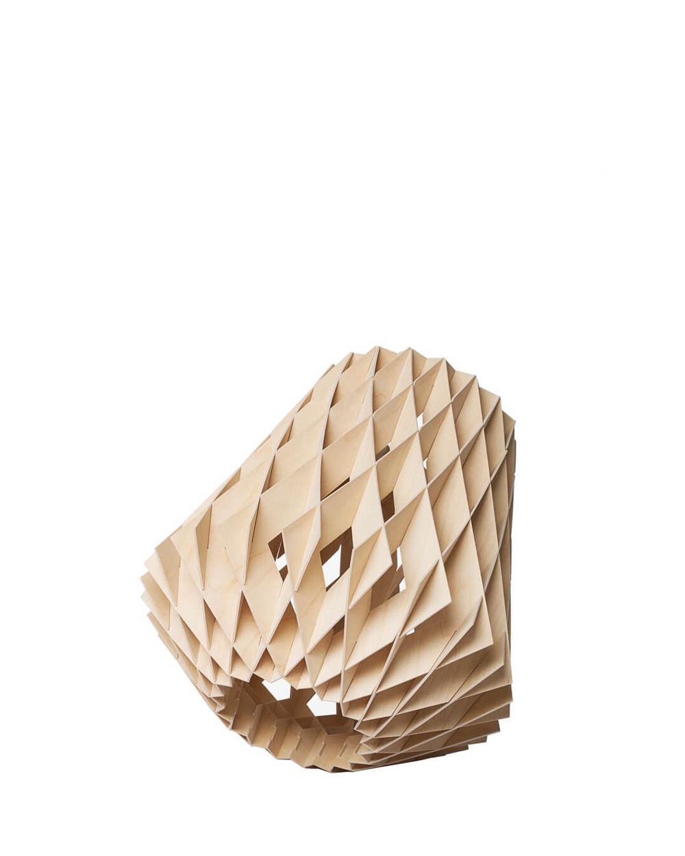 Deze unieke tafellamp kan zowel rechtop staan als gekanteld worden op de tafel en past op veel plekken in het interieur. De lamp bestaat uit een kap van duurzaam gecertificeerd berkenmultiplex, die handgemaakt is. De berkenlamellen creëren een warme sfeer wanneer het licht erdoorheen schijnt en zijn zonder schroeven of lijm gemonteerd. Daarnaast heeft de lamp een stijlvol en geometrisch ontwerp dat in elke ruimte de aandacht trekt