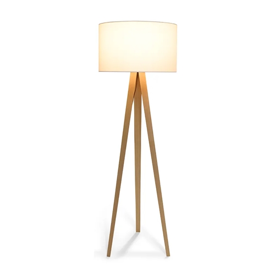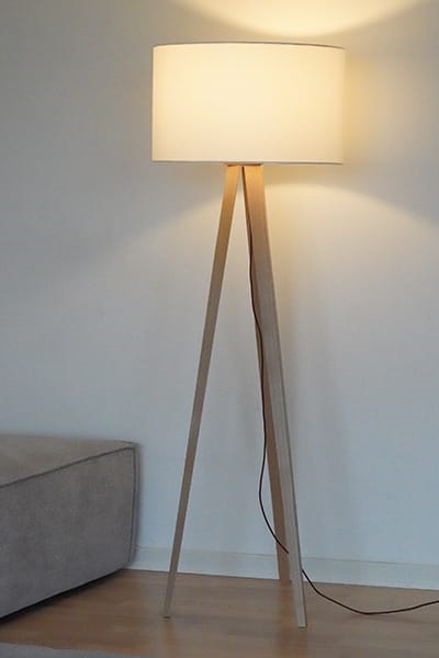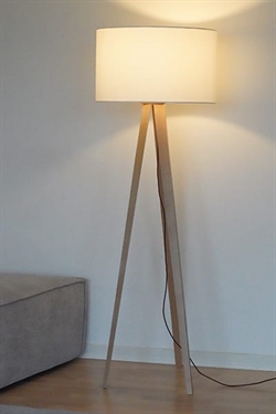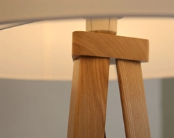 De vloerlamp Silvanus maakt deel uit van Antidarks Wood Collection en is ontwikkeld als een Limited Edition lamp, waarbij natuurlijke materialen en een eenvoudige vormgeving hand in hand gaan. De lamp is opgebouwd rond drie slanke poten van essenhout, die een stabiele tripod-basis vormen en tegelijk zorgen voor een lichte en luchtige uitstraling. De grote textielen kap brengt de constructie in balans en zorgt voor een zachte lichtverdeling, waarbij het licht gelijkmatig de ruimte in wordt gefilterd en een aangename, rustige sfeer creëert.