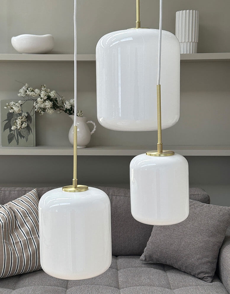 Silvia D15 hanglamp in mondgeblazen opaalglas met ophanging in messing combineert met zijn prachtige design het moderne en klassieke. De kap met het glanzende opaalglas verspreidt een verblindingsvrij licht in alle richtingen en zorgt voor een aangename verlichting. De hanglamp is ideaal boven de keukentafel, als lamp bij het nachtkastje in de slaapkamer of alleen of meerdere samen in de woonkamer.