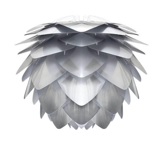 Silvia lampenkap heeft een karakteristiek ontwerp met driehoekige lamellen. De kap kan in combinatie met ophangsystemen of standaards van bijvoorbeeld Umage een prachtige hanglamp, wandlamp, vloerlamp of tafellamp vormen. Gebruik Silvia voor mooie verlichting boven de eettafel met een moderne uitstraling, die ook goed tot zijn recht komt in andere ruimtes van het huis. De prachtige lampenkap is verkrijgbaar in verschillende kleuren en twee maten.