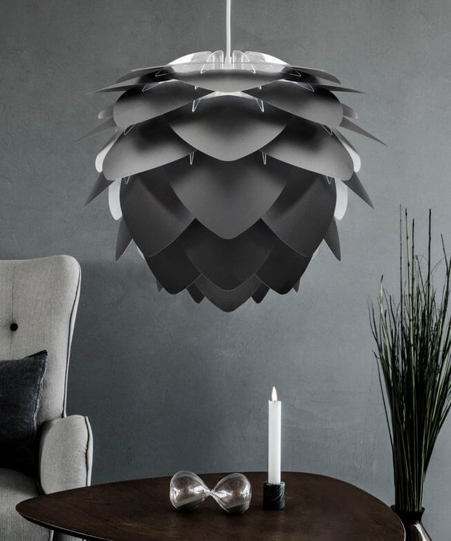 Silvia lampenkap heeft een karakteristiek ontwerp met driehoekige lamellen. De kap kan in combinatie met ophangsystemen of standaards van bijvoorbeeld Umage een prachtige hanglamp, wandlamp, vloerlamp of tafellamp vormen. Gebruik Silvia voor een mooie verlichting boven de eettafel met een moderne uitstraling, die ook goed zal passen in de andere kamers van het huis. De prachtige lampenkap is verkrijgbaar in verschillende kleuren en twee maten.