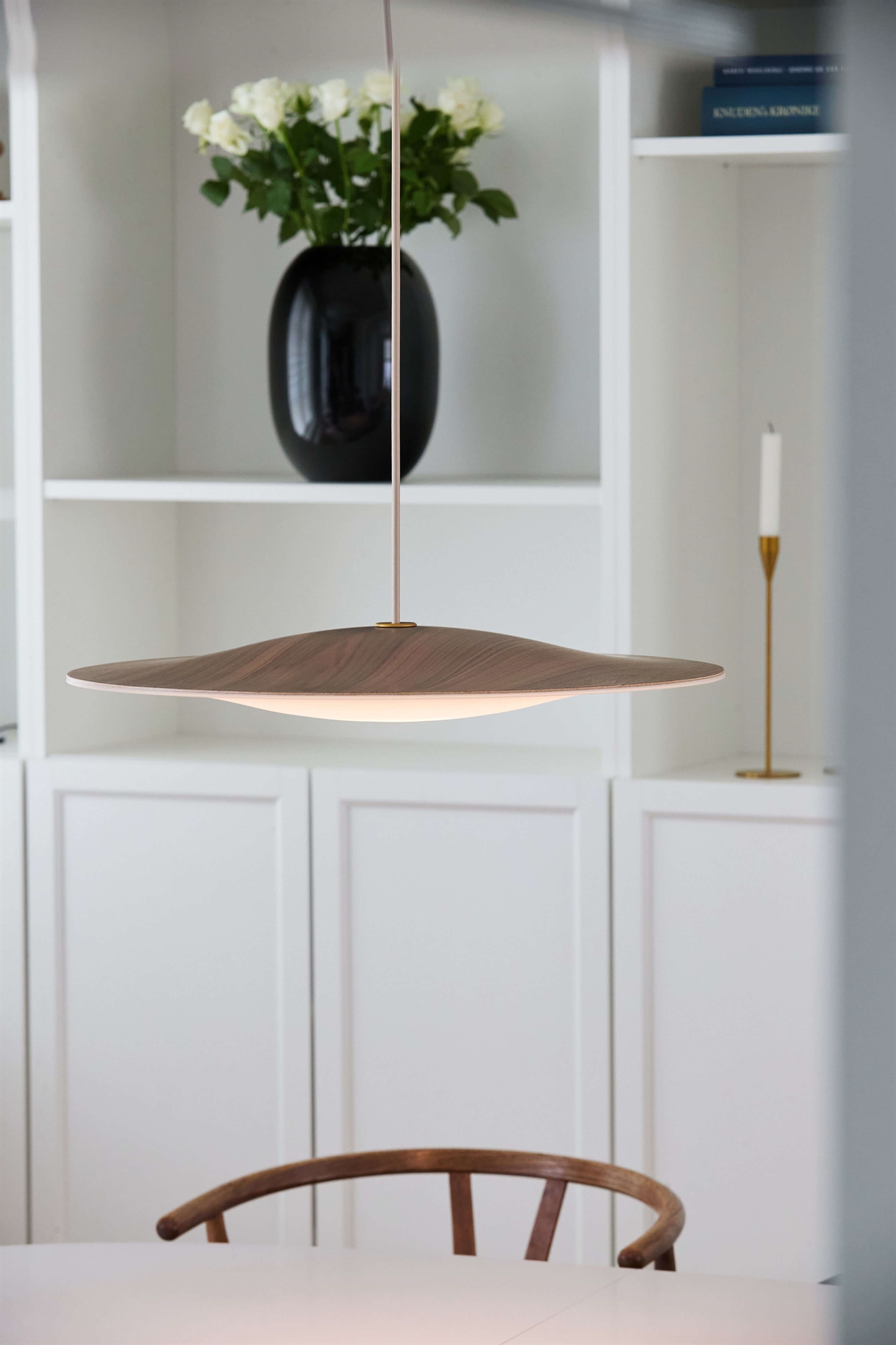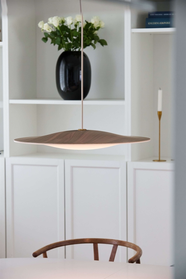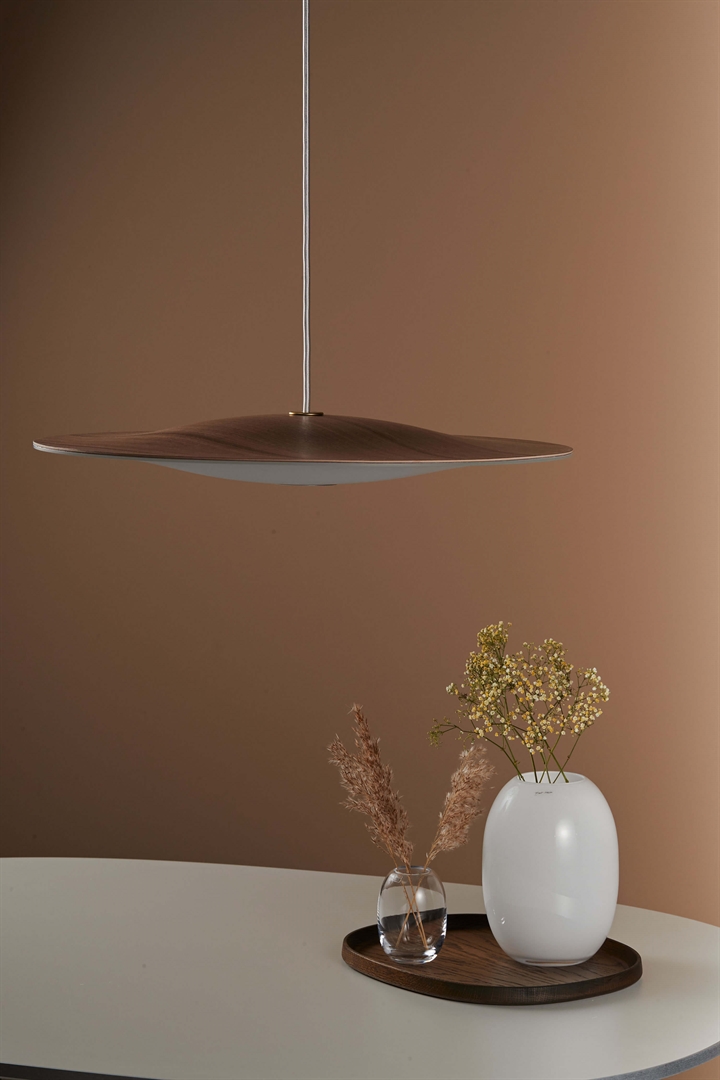 Piet Hein Sinus Wood 550P hanglamp, walnoot/opal