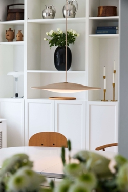 De Sinus lampenserie is geïnspireerd door de sinuscurve, die een harmonische wiskundige vorm heeft. De vorm van de Sinus hanglamp zorgt voor een aangenaam, verblindingsvrij licht, dat perfect geschikt is voor elke ruimte. Met de varianten Sinus Wood heb je de mogelijkheid om een elegante houten lamp deel van je interieur te maken.