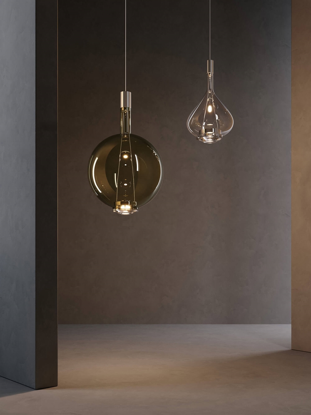 De Sky-Fall serie bestaat uit hanglampen in twee maten en verschillende kleuren.