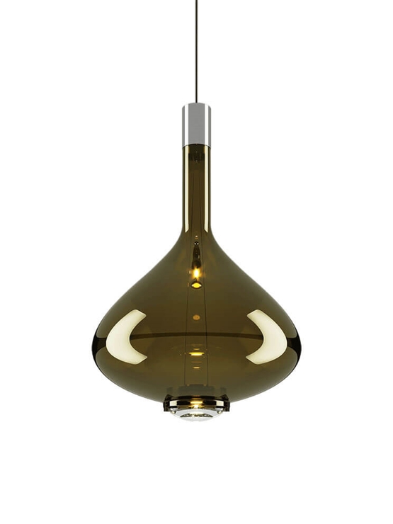 De Sky-Fall hanglamp in gouden saliegroen is het resultaat van een fusie tussen het ontwerp van een antieke wijnkaraf en nieuwe moderne lijnen. Het resultaat van deze fusie is een hanglamp met een prachtig en modern uiterlijk.