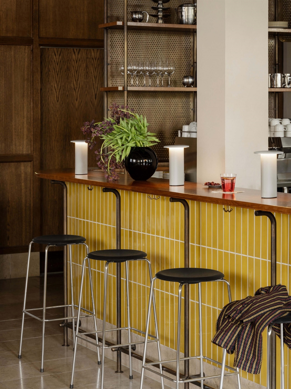 Solae Portable, gelanceerd in 2025, is met de architectonische lijnen, het industriële precisiewerk en een verfijnde materiaalkeuze een natuurlijke aanvulling op de overige collectie van Fritz Hansen. Hij is verkrijgbaar in drie verschillende afwerkingen: natgelakt warm grijs, natgelakt wit of geanodiseerd aluminium met een lichte groene tint.