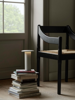 De batterijlamp is gemaakt van duurzaam aluminium en kan zowel binnen als buiten worden gebruikt, mits deze na gebruik binnen wordt gehaald. De ovale vorm ligt perfect in de hand en maakt het gemakkelijk om de lamp mee te nemen. Hij is dimbaar in drie stappen van helder gefocust licht tot warm gedimd licht, zodat de lamp voor alles kan worden gebruikt, van leeslicht tot sfeerverlichting. Geplaatst in het midden van de eettafel kan de tafellamp bijvoorbeeld verblindingsvrije verlichting creëren die meer kan dan alleen sfeer scheppen.