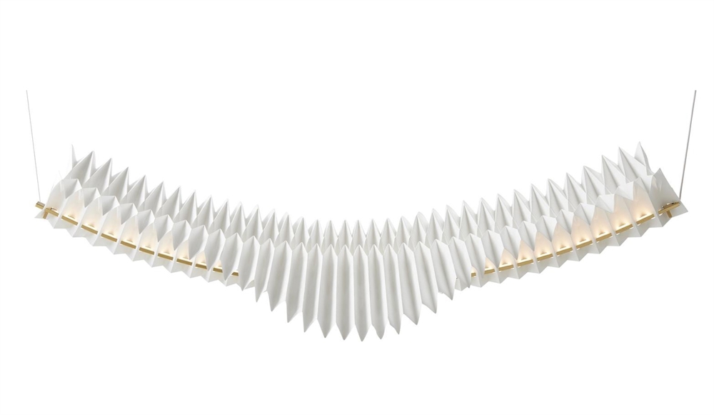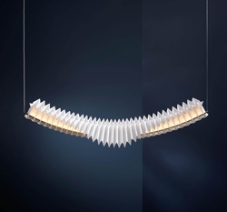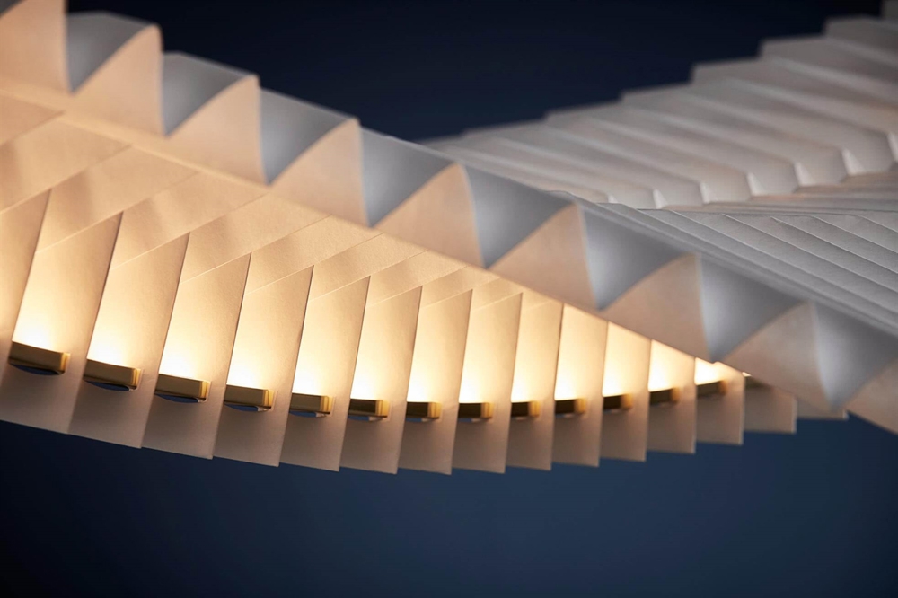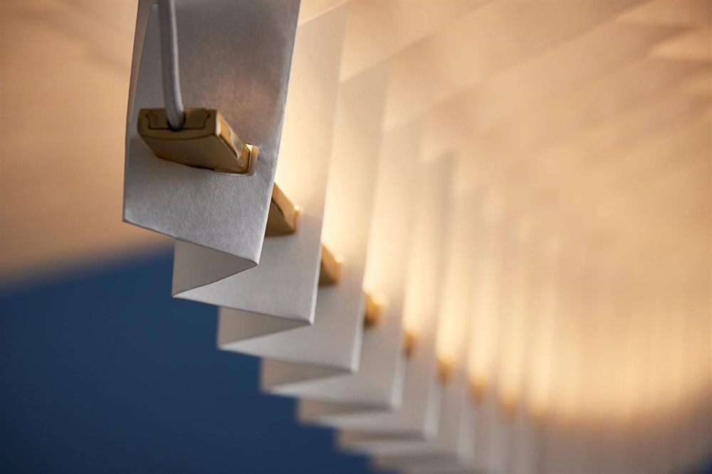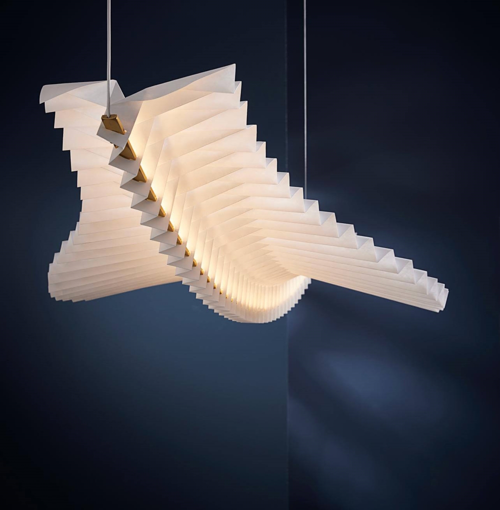 Achter het ontwerp staat het Britse designduo Fung+Bedford, dat zich toelegt op de kunst van het vouwen van origami. De unieke zwevende vorm van Sora past goed als hanglamp boven de eettafel, verlichting in een hal met hoge plafonds of als opvallend designelement in een kantooromgeving.