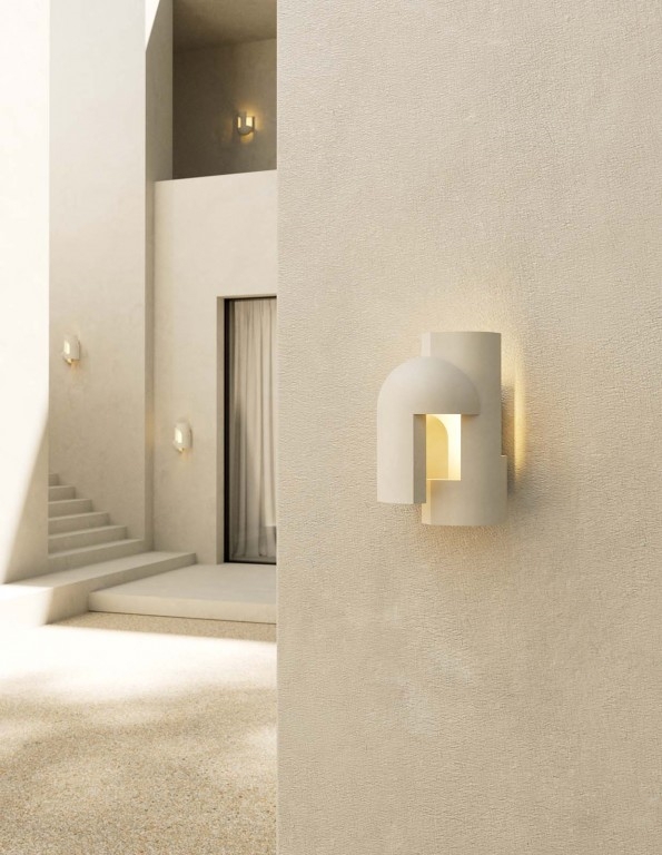 De prachtige wandlamp is gemaakt van beton en siert de muur dankzij de geometrische schermen die de lichtbron omsluiten, waardoor er een verblindingsvrij licht ontstaat. Hang de lampen naast elkaar of laat ze afzonderlijk de gevel verfraaien.