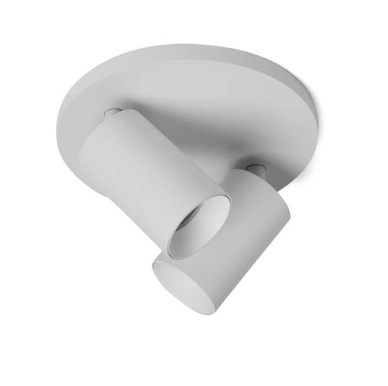 SpotOn Circle2 is eenvoudig in stijl - met strakke lijnen in zijn uitstraling. De lamp bestaat uit een ronde basis, waarop twee verstelbare spots zitten - 360° verticaal / 90° horizontaal. De lichtbron heeft een mooie teruggetrokken positie in de kap.