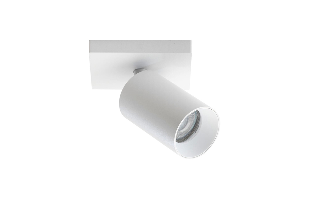 SpotOn1 wit, spot/plafondlamp is eenvoudig in stijl - maar met strakke lijnen in zijn uitstraling. De lamp bestaat uit een basis waarop een verstelbare spot zit - 360° verticaal / 90° horizontaal. De lichtbron heeft een mooie teruggetrokken positie in de kap.