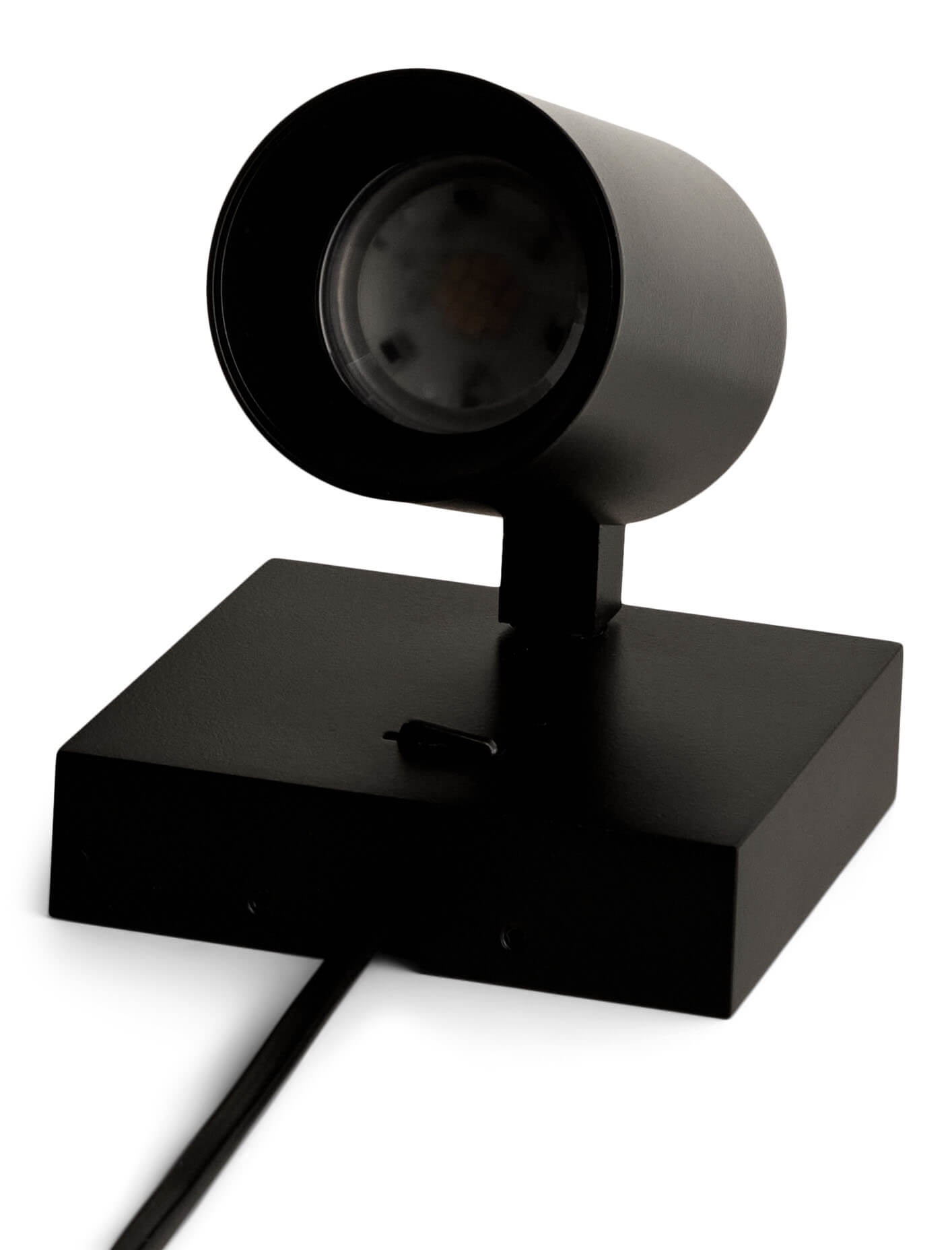 SpotOn1 Wall is verkrijgbaar in wit en zwart en in een variant met ronde basis. De lamp is ontworpen voor directe montage op de muur en is uitgerust met een kabelgat, waardoor het gemakkelijk is om een snoer te trekken.