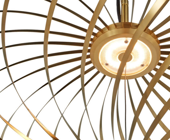 Spring hanglamp is samengesteld uit meerdere flexibele banden van roestvrij staal met een messing afwerking, die als een veer kunnen worden aangepast naar verschillende silhouetten, van een volledig platte vorm tot een volle pompoenvorm. De hanglamp heeft een prachtig samenspel van licht en schaduw en past goed in veel interieurs. Hij kan bijvoorbeeld boven de eettafel worden geplaatst.