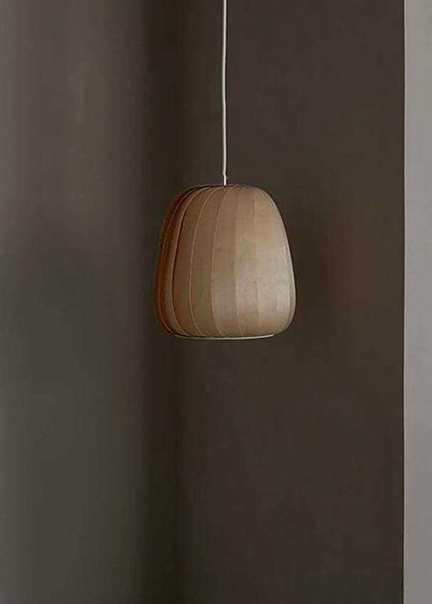 Deze Tom Rossau hanglamp is gemaakt van berk, dat na verloop van tijd een mooie patina krijgt, waarbij de structuur van het hout iets verandert. Dit benadrukt de nerven van het hout en maakt ze iets lichter.
