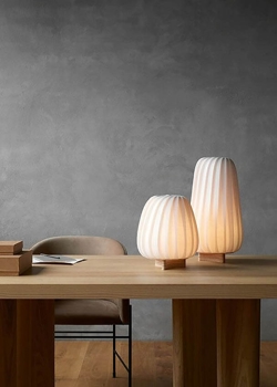 Deze Tom Rossau tafellamp is gemaakt van berk, dat na verloop van tijd een mooie patina krijgt, waarbij de structuur van het hout enigszins verandert. Dit benadrukt de nerven van het hout en maakt ze iets lichter.