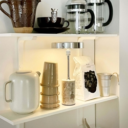De draagbare tafellamp is gemakkelijk mee te nemen en kan in elke ruimte worden geplaatst of misschien buiten op het terras worden gebruikt, mits de lamp na gebruik weer binnen wordt gehaald. De aan/uit-knop is praktisch bovenop de kap geplaatst, en de batterijlamp wordt eenvoudig opgeladen met de meegeleverde oplaadkabel.
