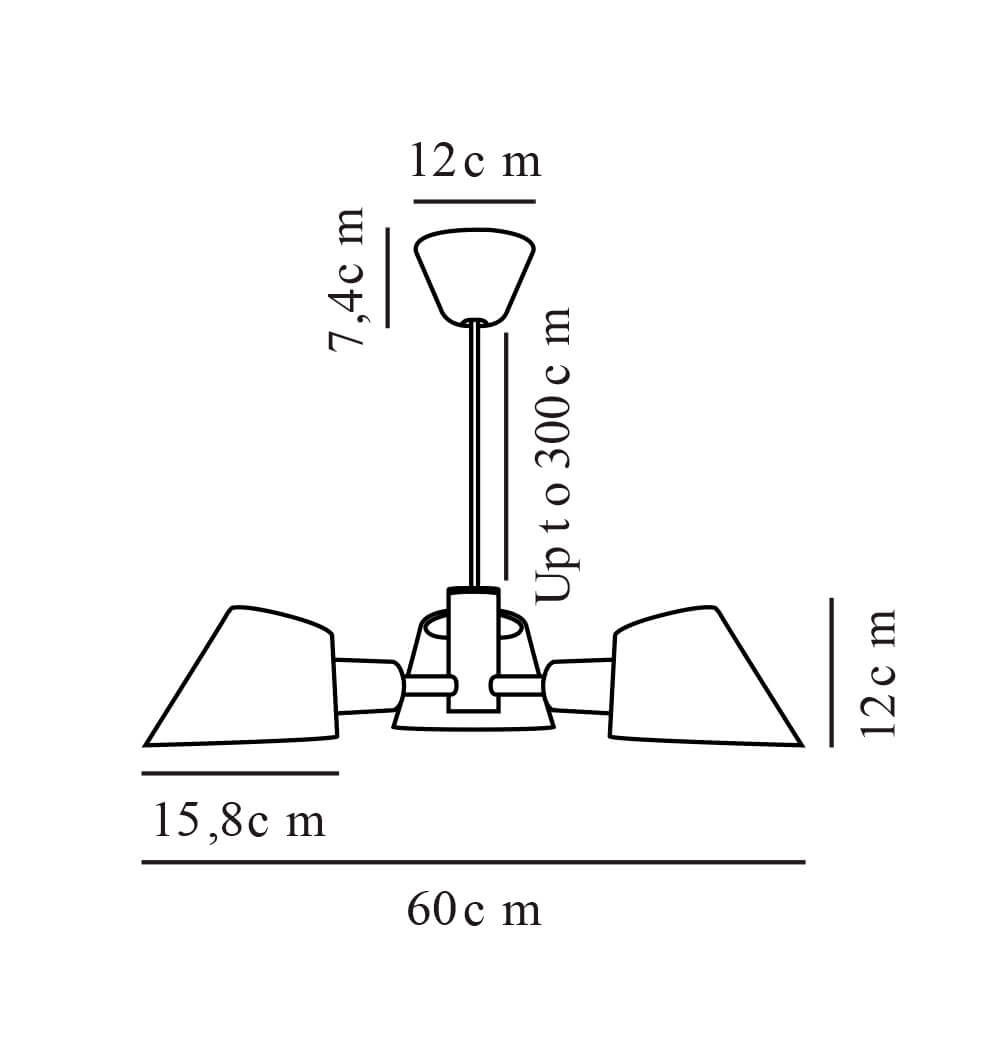 Afmetingen: Ø60 x H12 cm, kappen: Ø15,8 x H12 cm