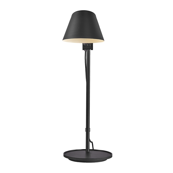 De tafellamp Stay heeft een functioneel ontwerp met een flexibele lampenarm en een verstelbare lampenkap die 90° kan kantelen en 350° kan draaien. De minimalistische en tijdloze Scandinavische stijl wordt gecompleteerd door de open en schuine vorm van de kap, die zorgt voor een grote hoeveelheid licht. Het zachte en aangename licht wordt zowel naar boven als naar beneden verspreid, waardoor de lamp een uitstekende keuze is voor het bureau of voor verlichting van andere werkruimtes.
