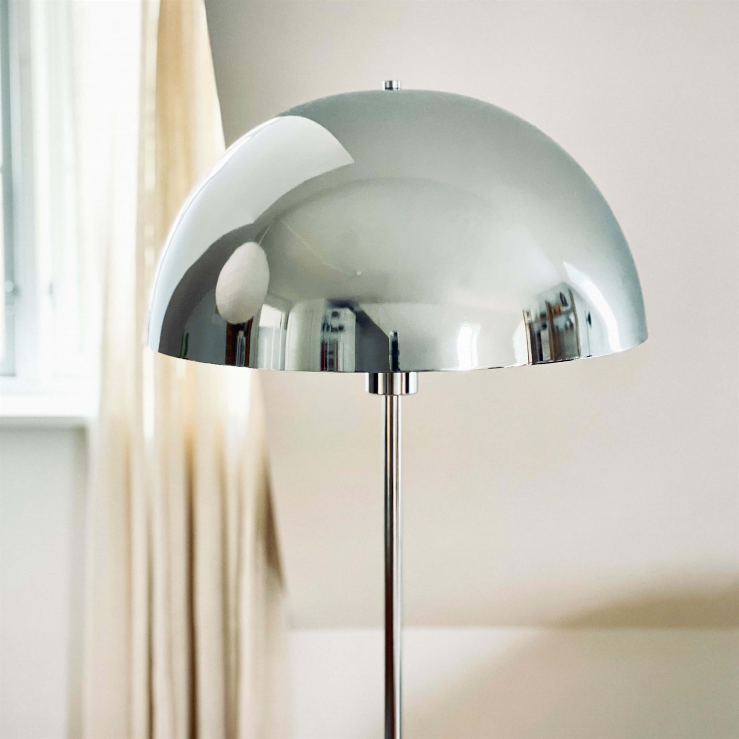 De vloerlamp is een elegante toevoeging aan elke ruimte en kan bijvoorbeeld gecombineerd worden met de Stockholm tafellamp in chroom en marmer.