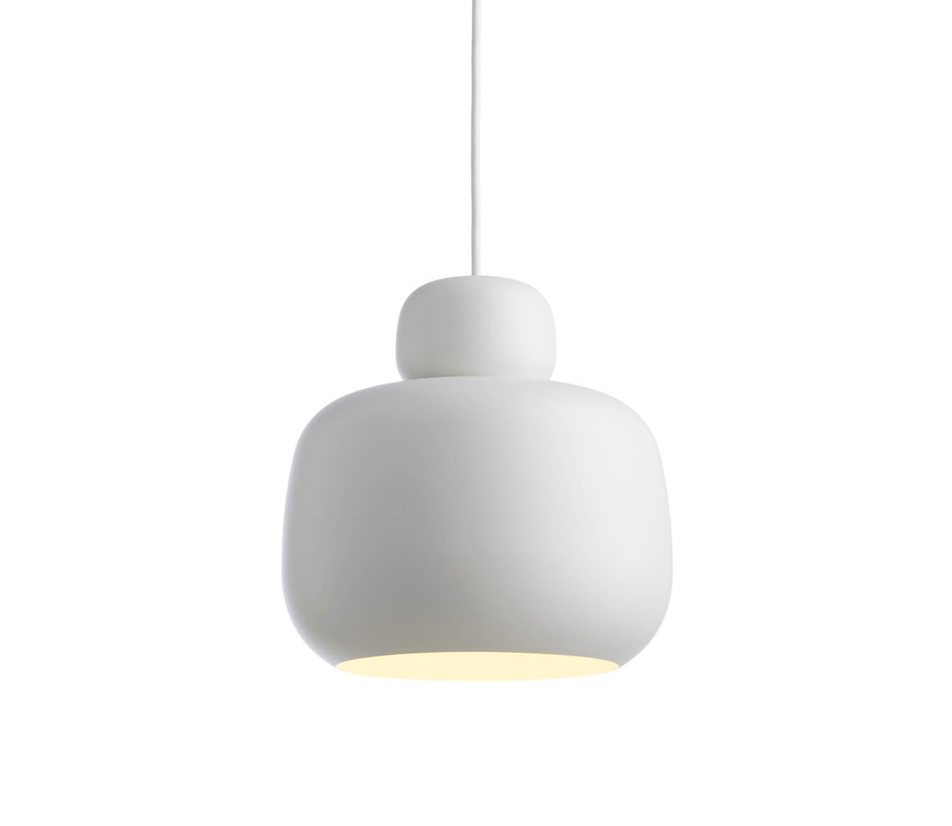 De Stone hanglamp heeft een zacht uiterlijk met ronde vormen, wat een rustige uitstraling geeft aan elke ruimte. De lamp is geïnspireerd door stenen op het strand die door de tijd heen een zachte en organische buitenkant krijgen door water, wind en weer.