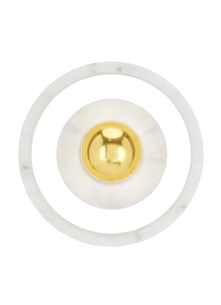 De wandlamp Stone is een duurzame lamp met een basis van marmer, een materiaal dat ontwerpers al duizenden jaren fascineert. Het kenmerk van de lamp is een solide buitenste marmeren ring die lijkt te zweven rond de lichtbron en een aureole-effect creëert. Het ontwerp in marmer met een gouden detail past goed in veel moderne interieurs, en de lamp kan bijvoorbeeld alleen of meerdere samen worden geplaatst in de keuken, in een gang of in de entree, eventueel in combinatie met andere elementen in marmer.