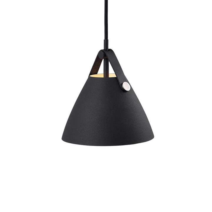 De hanglamp Strap 16 combineert metaal en leer in een moderne Scandinavische stijl. De Strap-serie ontleent zijn naam aan de opvallende riemen die warmte en een ruwe uitstraling aan de lamp toevoegen. Het ontwerp balanceert tussen een klassieke en industriële uitstraling.