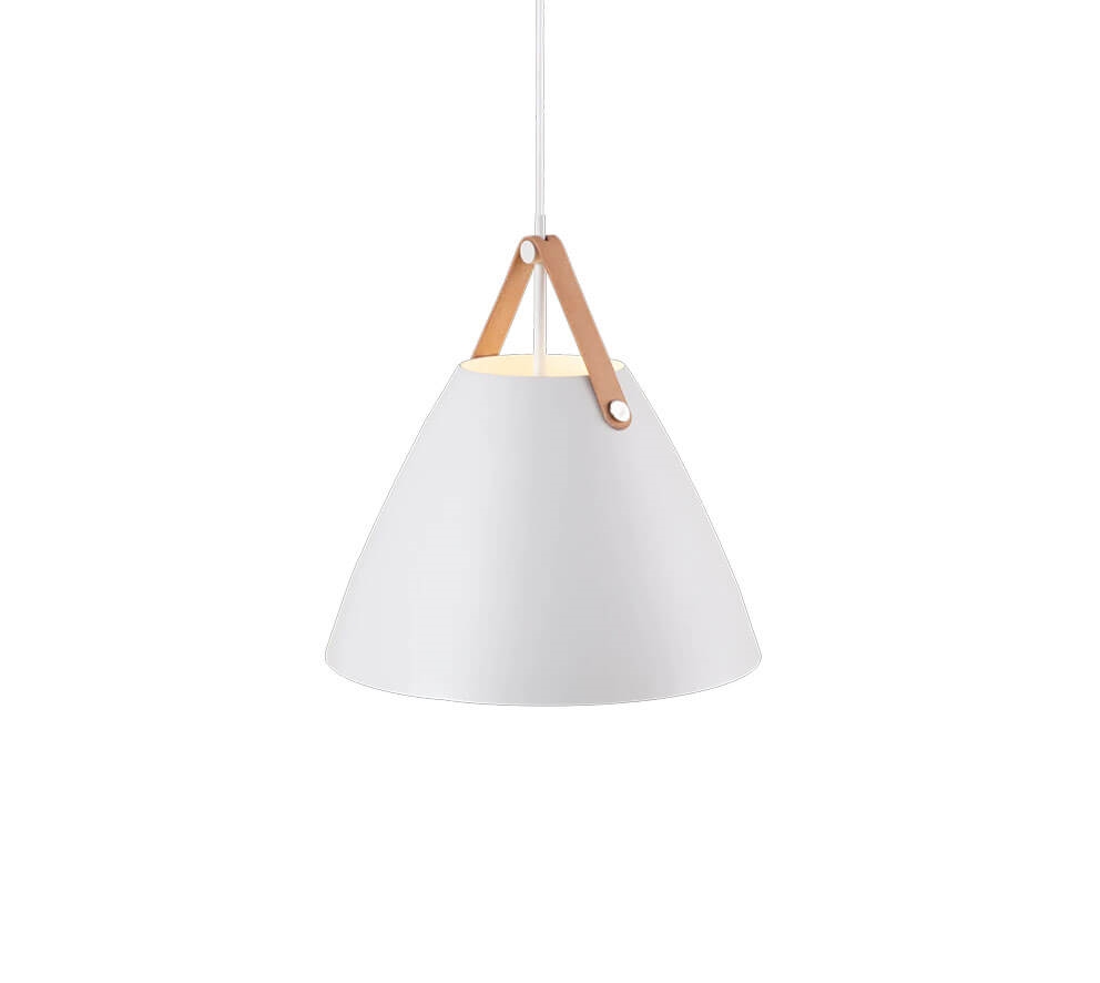 De hanglamp Strap 36 combineert metaal en leer in een moderne Scandinavische stijl. De Strap-serie dankt zijn naam aan de opvallende riemen die warmte en een ruwe uitstraling aan de lamp toevoegen. Het ontwerp balanceert tussen een klassieke en een industriële uitstraling.