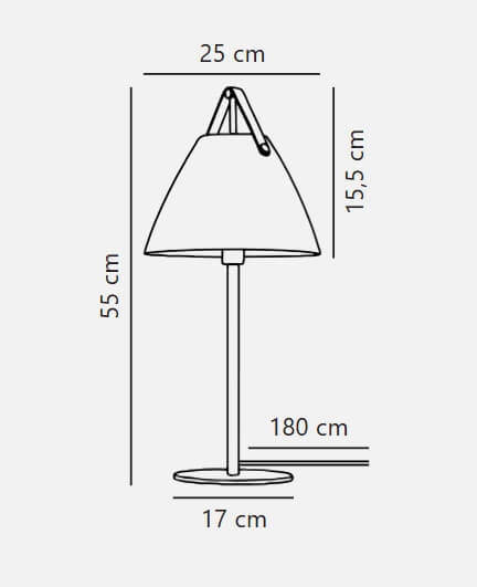 De tafellamp Strap combineert metaal en leer in een moderne Scandinavische stijl. De Strap-serie ontleent zijn naam aan de opvallende riemen die warmte en een ruwe uitstraling aan de lamp toevoegen. Het ontwerp balanceert tussen een klassiek en een industrieel uiterlijk.