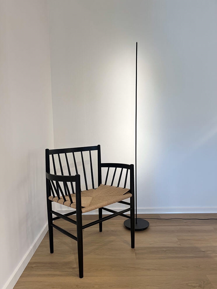 De vloerlamp String heeft een slank en ruimtebesparend ontwerp met geïntegreerde LED-verlichting aan de zijkant van de lamp. Het licht wordt in- en uitgeschakeld met een schakelaar bovenop, met traploze dimming, zodat je zelf de lichtsterkte kunt bepalen. Gebruik bijvoorbeeld String om een meubel of een hoek van de kamer te verlichten, of als decoratief licht in de woonkamer, slaapkamer of kantoor, waar de vloerlamp met zijn minimalistische uitstraling goed zal passen in veel interieurs.