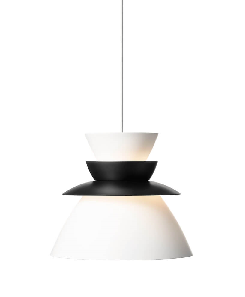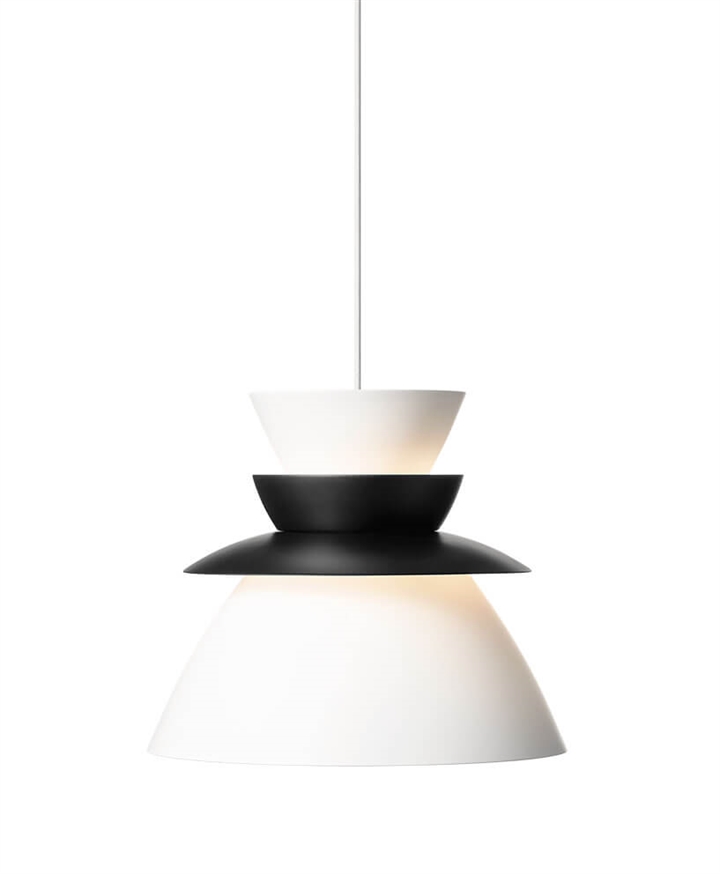 Lyfa Sundowner hanglamp 400, mat zwart/mat wit - ontworpen door Jørn Utzon