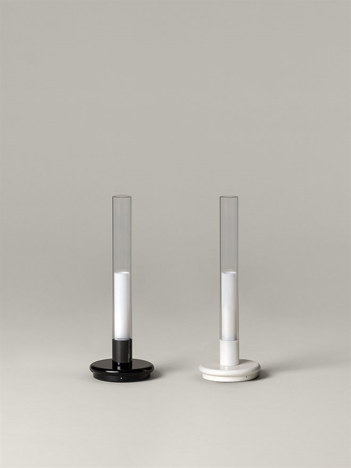 Santa & Cole Sylvestrina batterijlamp/tafellamp, glanzend wit – ontworpen door Enric Sòria en Jordi Garcés