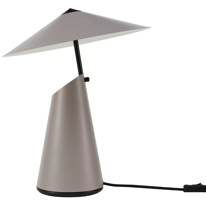 De Taido-tafellamp is opgebouwd uit twee geometrische vormen die samen een prachtige silhouet creëren. De kap is spits en rond - en is mooi geplaatst op de conische basis. Het licht wordt van onderen naar boven in de kap gereflecteerd en creëert een zacht en diffuus licht. De lampenkap kan in meerdere richtingen worden versteld, zodat je het licht naar wens kunt instellen. Plaats bijvoorbeeld de Taido tafellamp in je woonkamer of op je bureau.