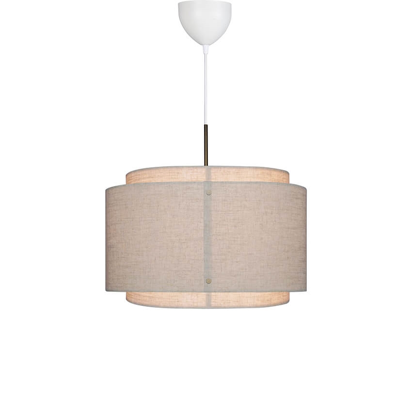 De linnen kap en messing ophanging zijn mooi gecombineerd en creëren een zachte en warme uitstraling in de ruimte.