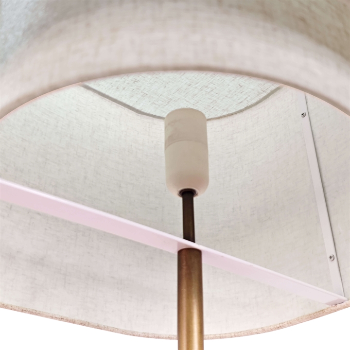 De Takai vloerlamp heeft een zachte en warme uitstraling met een mooie linnen kap en een voet van gebronsd messing. De grote linnen kap nodigt uit om de vloerlamp vanuit verschillende hoeken te bekijken en draagt bij aan het maken van de lamp tot een centraal element in het interieur.