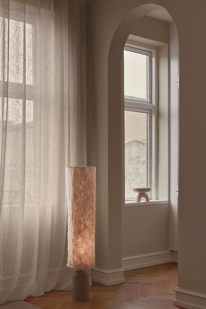 Talli vloerlamp is Deens design dat zowel opvallend als licht is. De metalen voet vormt een mooi contrast met de slanke cilindervormige kap van Tyvek, die zowel duurzaamheid als een prachtige lichtverspreiding garandeert. De vloerlamp geeft een zacht en diffuus licht en is perfect om bijvoorbeeld een hoek van de woonkamer te verlichten.