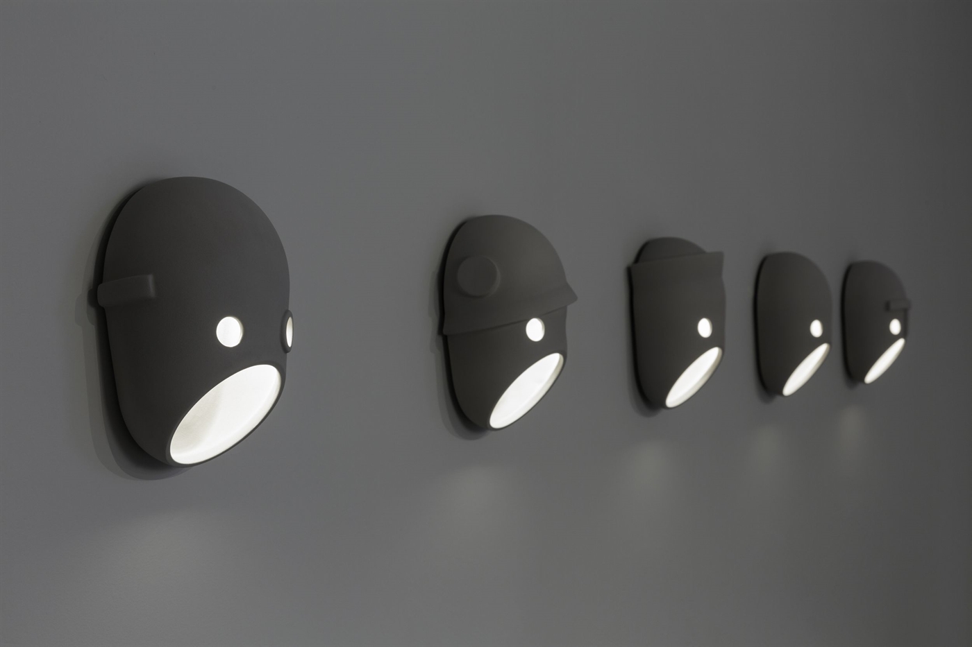 'The Party' wandlampen zijn geïnspireerd door een groep sterke, boeiende persoonlijkheden, waarbij hun gegoten keramische gezichten onze fascinatie voor geheimen, familiedynamiek en intriges benadrukken. Wanneer ze samen worden gezien - als een feestelijke groep - stralen ze op het podium met een coole houding, maar achter de samengestelde façades van de lampen schuilt ook een speelse kant die onze verbeelding prikkelt. De persoonlijkheden hebben elk een spannend verhaal dat hen verbindt. Fragmenten van hun persoonlijkheden weerspiegelen de verborgen kanten van de mens en wekken interesse en nieuwsgierigheid op.