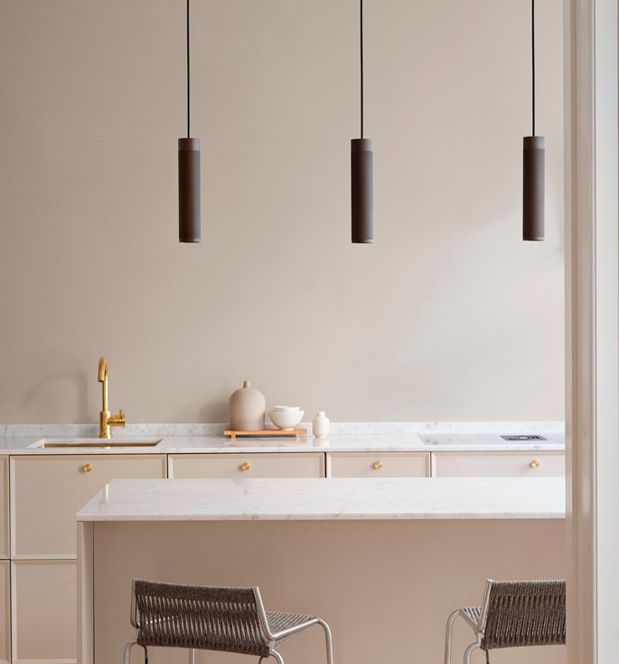 De elegante Patrone hanglamp van Thorup Copenhagen heeft een exclusieve uitstraling in zijn minimalistische design. Let vooral op het prachtige, handbewerkte messingoppervlak. De cilindervormige hanglamp is verkrijgbaar in drie maten en met verschillende afwerkingen. De lamp is ideaal als eettafellamp of lamp boven de keukentafel, waar de lamp een neerwaarts licht verspreidt dat aangename verlichting en sfeer aan elke ruimte toevoegt.