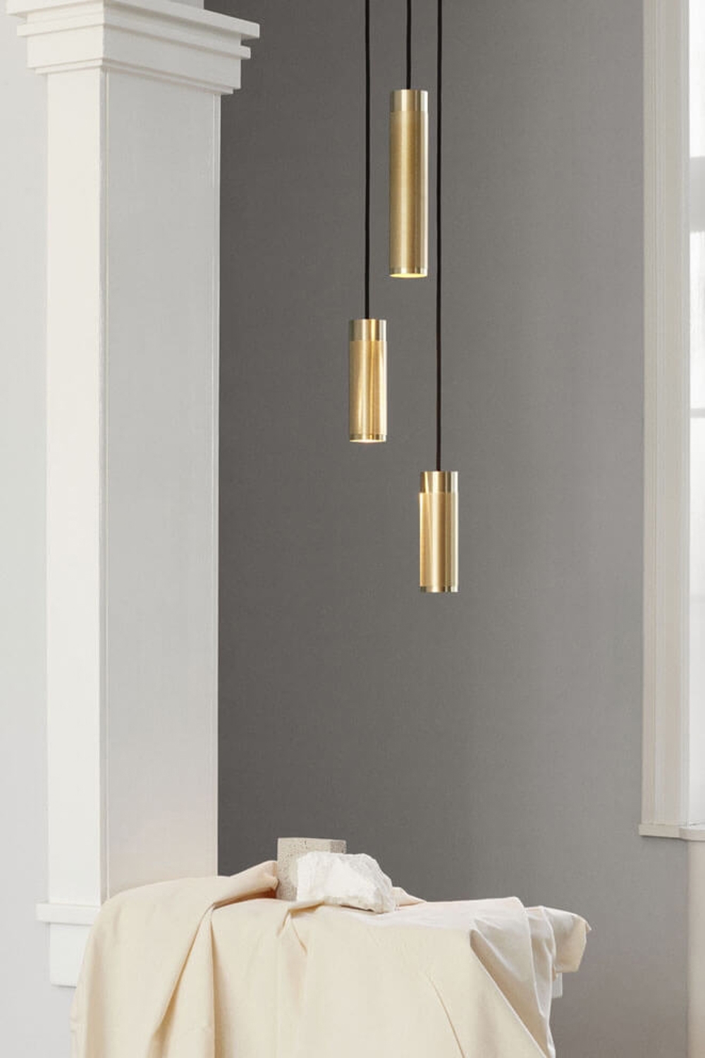 De elegante Patrone Cluster hanglamp van Thorup Copenhagen heeft een tijdloos en aantrekkelijk ontwerp dat elke ruimte betovert - zowel modern als klassiek. Met deze cluster hanglamp wilde ontwerper Kasper Thorup een figuratief en verheven lichtontwerp creëren dat een groots effect achterlaat in elke ruimte. Deze cluster hanglamp, geschetst in diamantsnede massief messing, combineert moeiteloos de Patrone-hanglampen in twee lengtes en is verkrijgbaar met een 3-stuks en 5-stuks baldakijn, en straalt een neerwaarts licht uit dat de ruimte een aangename sfeer geeft.