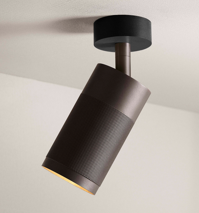 Thorup Copenhagen Patrone plafondspot m/baldakijn, gebronsd messing/donker, 120 mm.