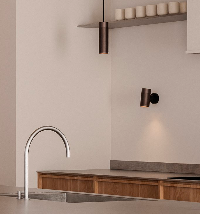 Thorup Copenhagen Patrone wandlamp, zwart-bruine messing/donker, 120 mm