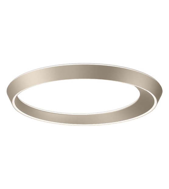 De plafondlamp Tidal bestaat uit een ring met een asymmetrische vorm geïnspireerd door de bewegingen van hemellichamen en getijden, waardoor de ene kant breder is dan de andere. Het ontwerp maakt de plafondlamp tot een visuele ervaring die er vanuit verschillende hoeken anders uitziet.