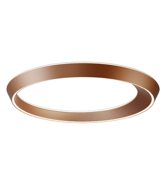 De plafondlamp Tidal bestaat uit een ring met een asymmetrische vorm geïnspireerd door de bewegingen van hemellichamen en getijden, waardoor de ene kant breder is dan de andere. Het ontwerp maakt de plafondlamp tot een visuele ervaring die er vanuit verschillende hoeken anders uitziet.