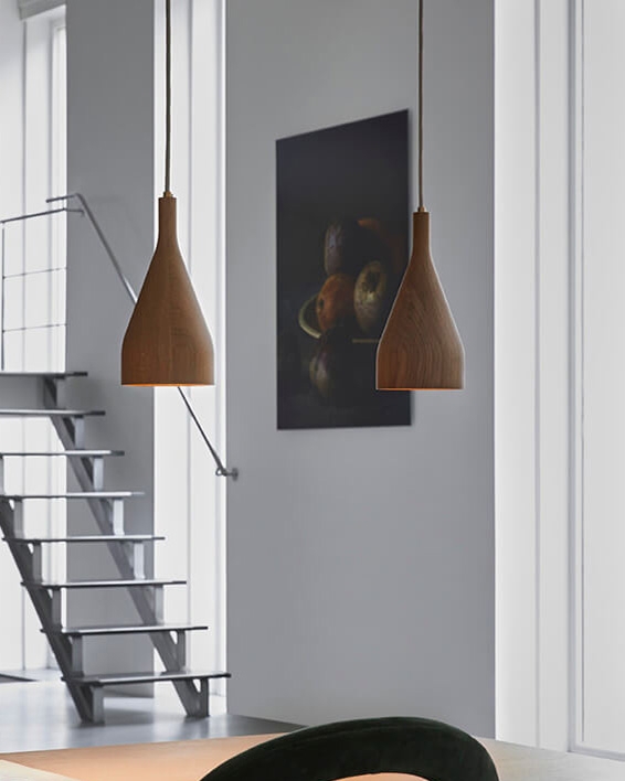 Timber is een hanglamp gemaakt van hout, verkrijgbaar in es, eik en walnoot. Een speciale houtlak is aangebracht op het oppervlak van de hanglamp om de elegante houtnerven te accentueren, wat een mooie en natuurlijke uitstraling geeft in elke ruimte. Ze zijn prachtig om boven de eettafel, salontafel of keukeneiland te hangen, alleen of in combinatie met andere Timber hanglampen.