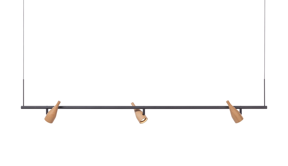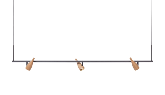 Timber Line 3 heeft drie verstelbare spots. De hanglamp kan boven een eettafel of bureau worden gebruikt of misschien om een kast of muur te verlichten.