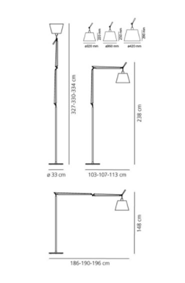 Deze variant van de Tolomeo Mega vloerlamp in zwart heeft een dimmer op het snoer.