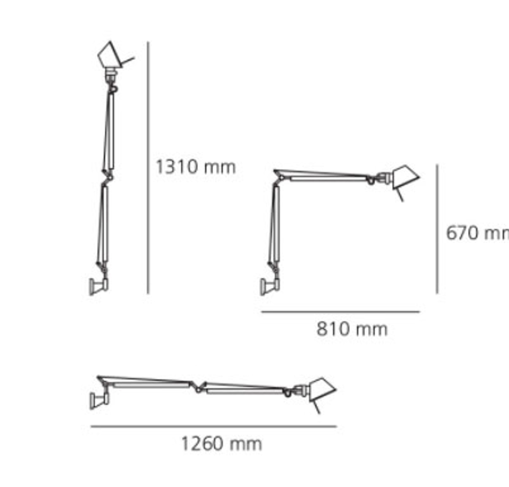 Tolomeo is verkrijgbaar in vele maten en is door zijn flexibiliteit een uitstekende keuze zowel als bureaulamp of als leeslamp bij het verstelbare bed.