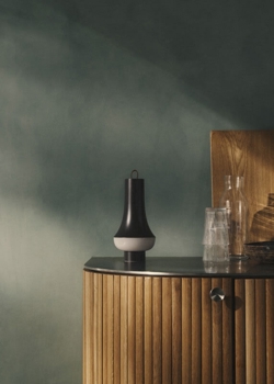 De minimalistische batterijlamp is het resultaat van een samenwerking tussen Louis Poulsen en het designstudio Nendo, gevestigd in Tokio, en is met zijn strakke lijnen en hoge kwaliteit een eerbetoon aan minimalisme en vakmanschap in de twee designculturen. De naam Tomoshi is een manier om licht te zeggen in het Japans.
