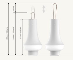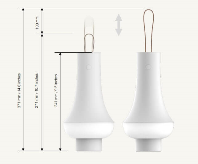 De batterijlamp heeft een matte afwerking en is uitgerust met een leren riem die verder kan worden uitgetrokken, zodat de lamp gemakkelijk kan worden meegenomen of opgehangen. De draagbare lamp heeft zowel traploze als 4-traps dimming (5%, 20%, 45%, 100%). Hij kan 5,5 uur branden op 100 procent helderheid, 15 uur op 45%, 38 uur op 20% en 48 uur op 5% en wordt eenvoudig opgeladen met de meegeleverde USB-kabel.