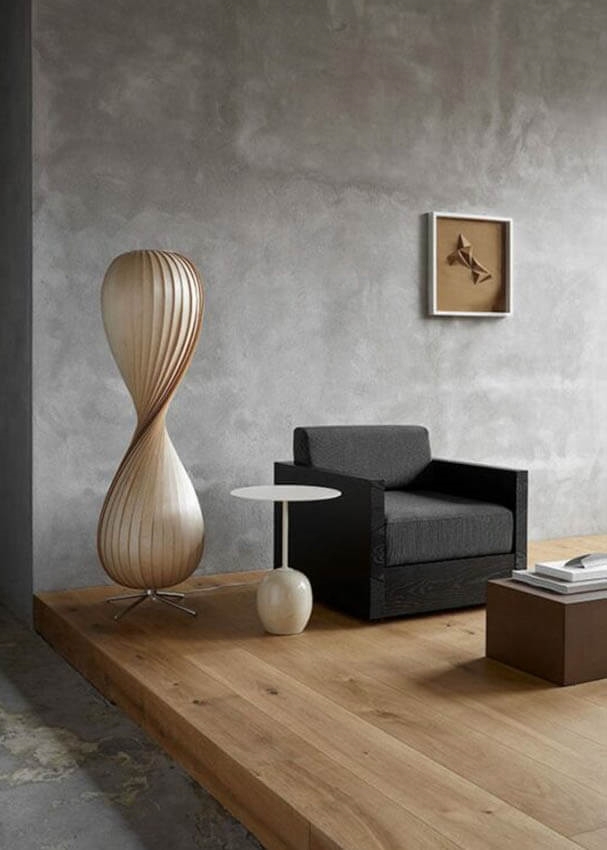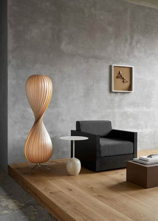 De prachtige vloerlamp heeft een sculpturaal uiterlijk en is daarom ook mooi, zelfs als het licht niet aan is. De TR10 is verkrijgbaar in twee verschillende materialen, namelijk berk en plastic.